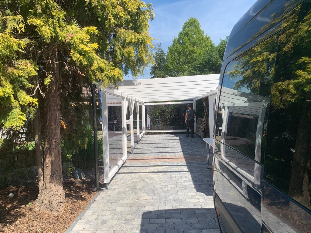 Vorteile einer weißen Pergola über der Hofeinfahrt