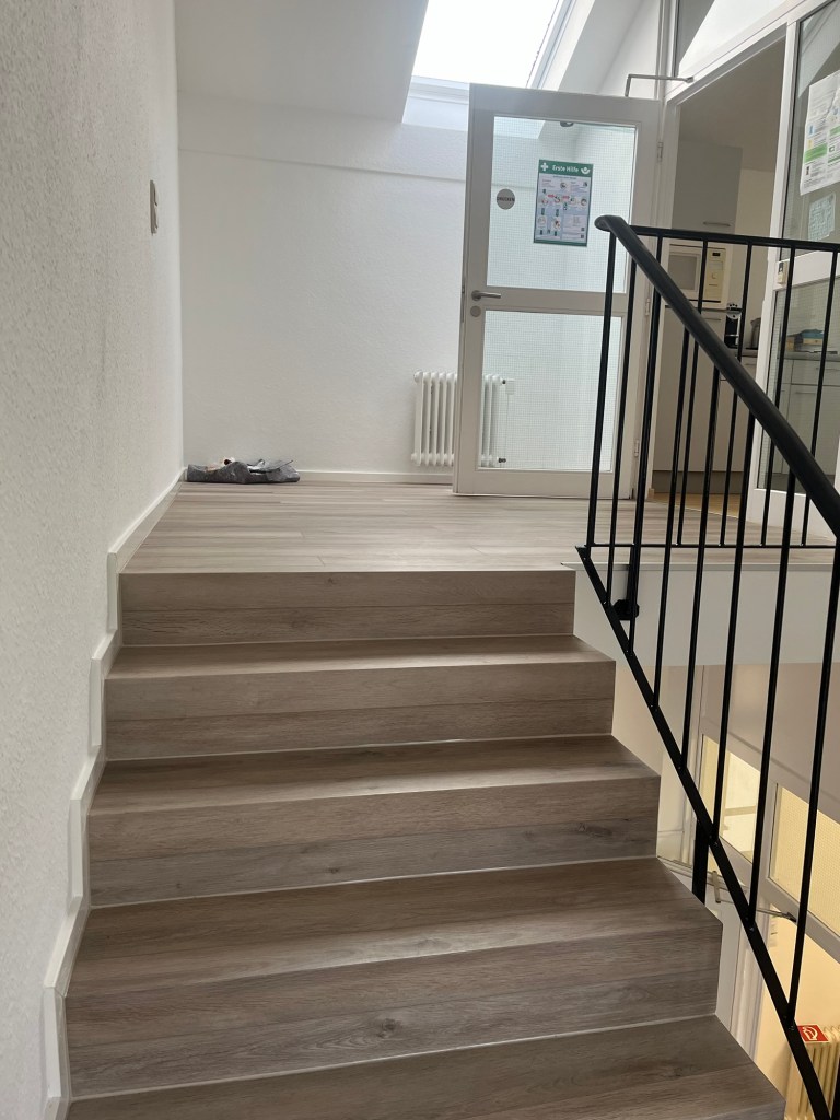 Der neue Vinylbelag überzeugt nicht nur optisch, sondern auch funktional: Er ist strapazierfähig, rutschhemmend und leicht zu reinigen. Die helle Holzoptik sorgt zudem für mehr Licht und ein offenes Raumgefühl im gesamten Treppenhaus.